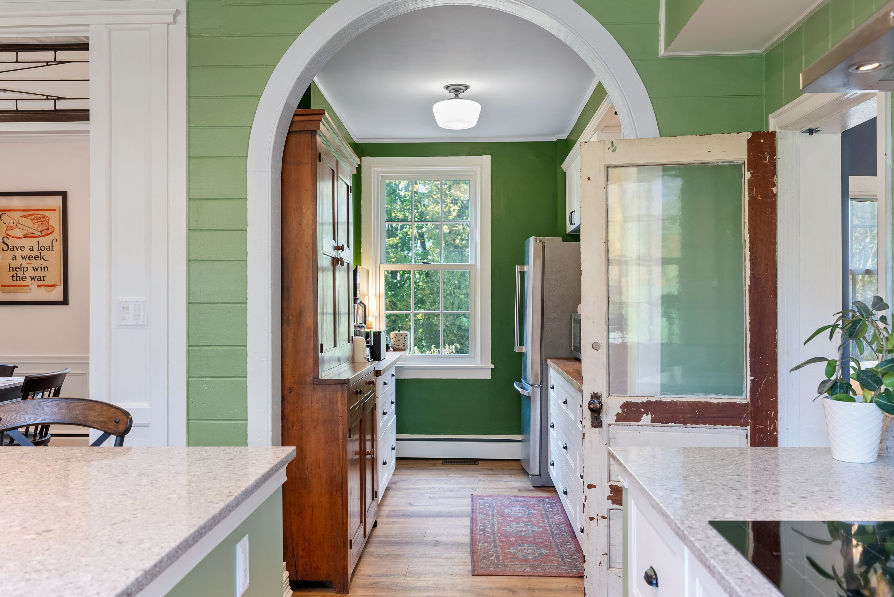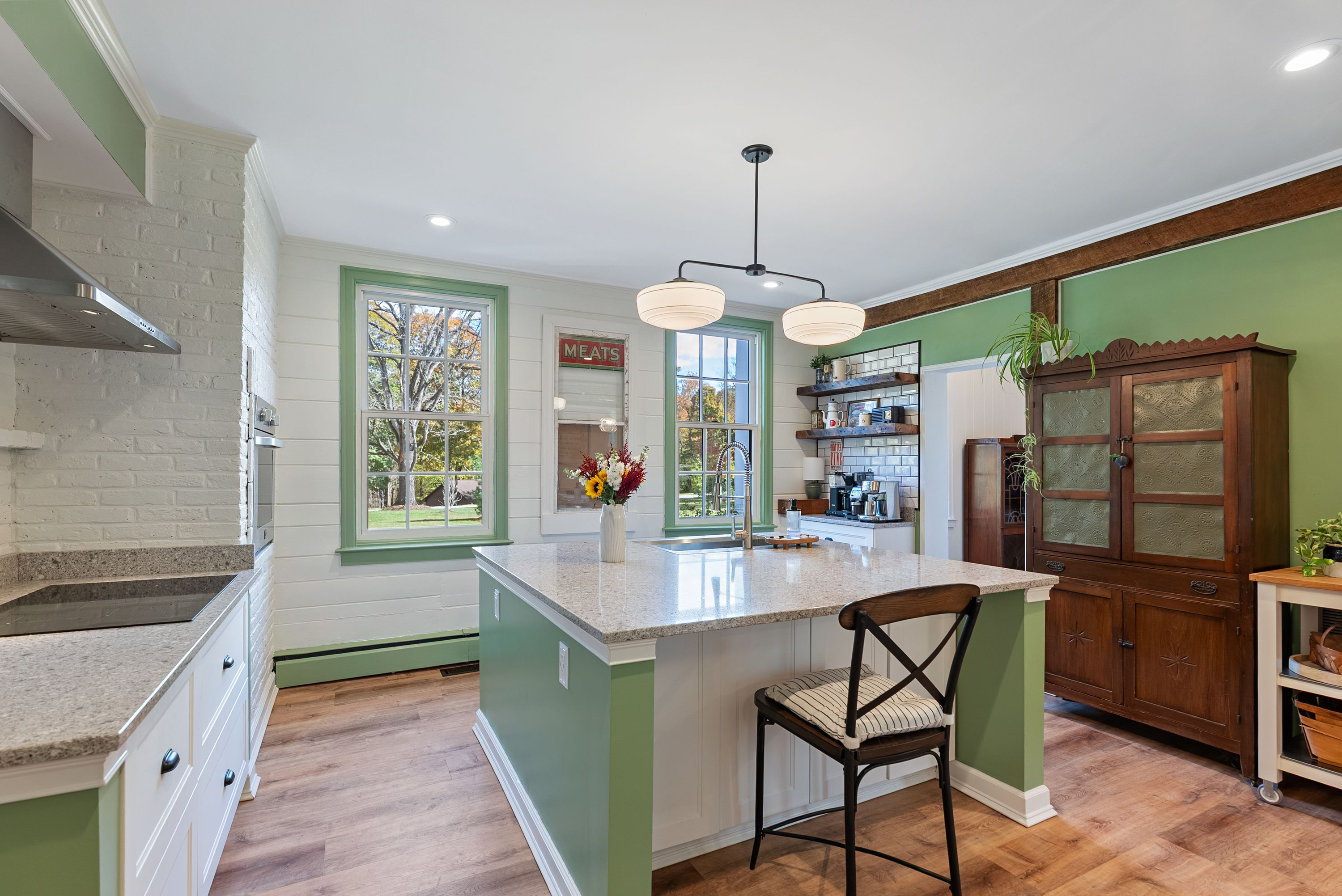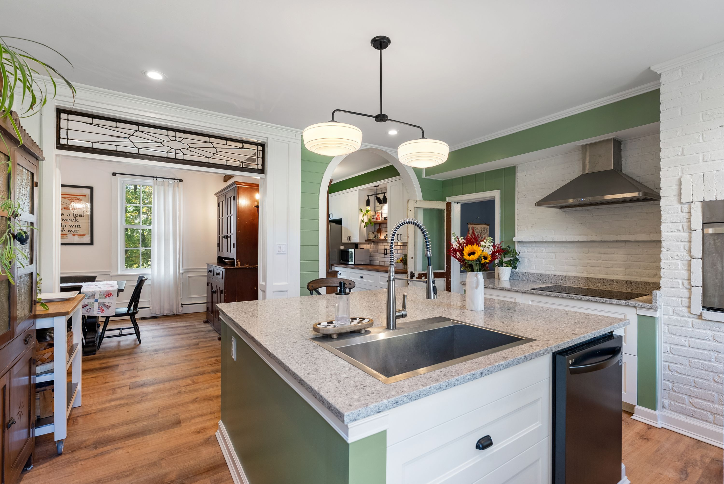 The gorgeous kitchen has been tastefully updated to meet the needs of modern living while maintaining its historic charm. Multiple fireplaces, original hardwood floors, and period details throughout preserve the soul of the home, while recent renovations ensure comfort and functionality.
