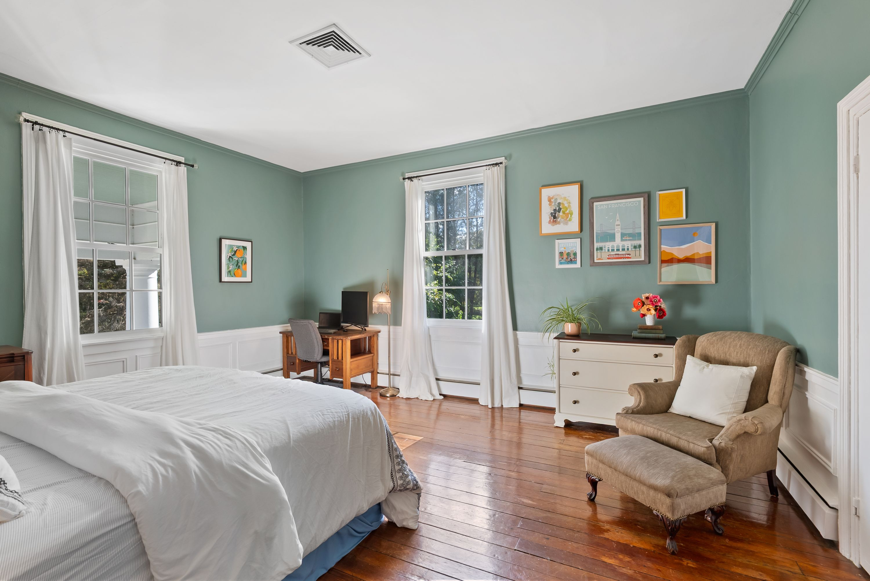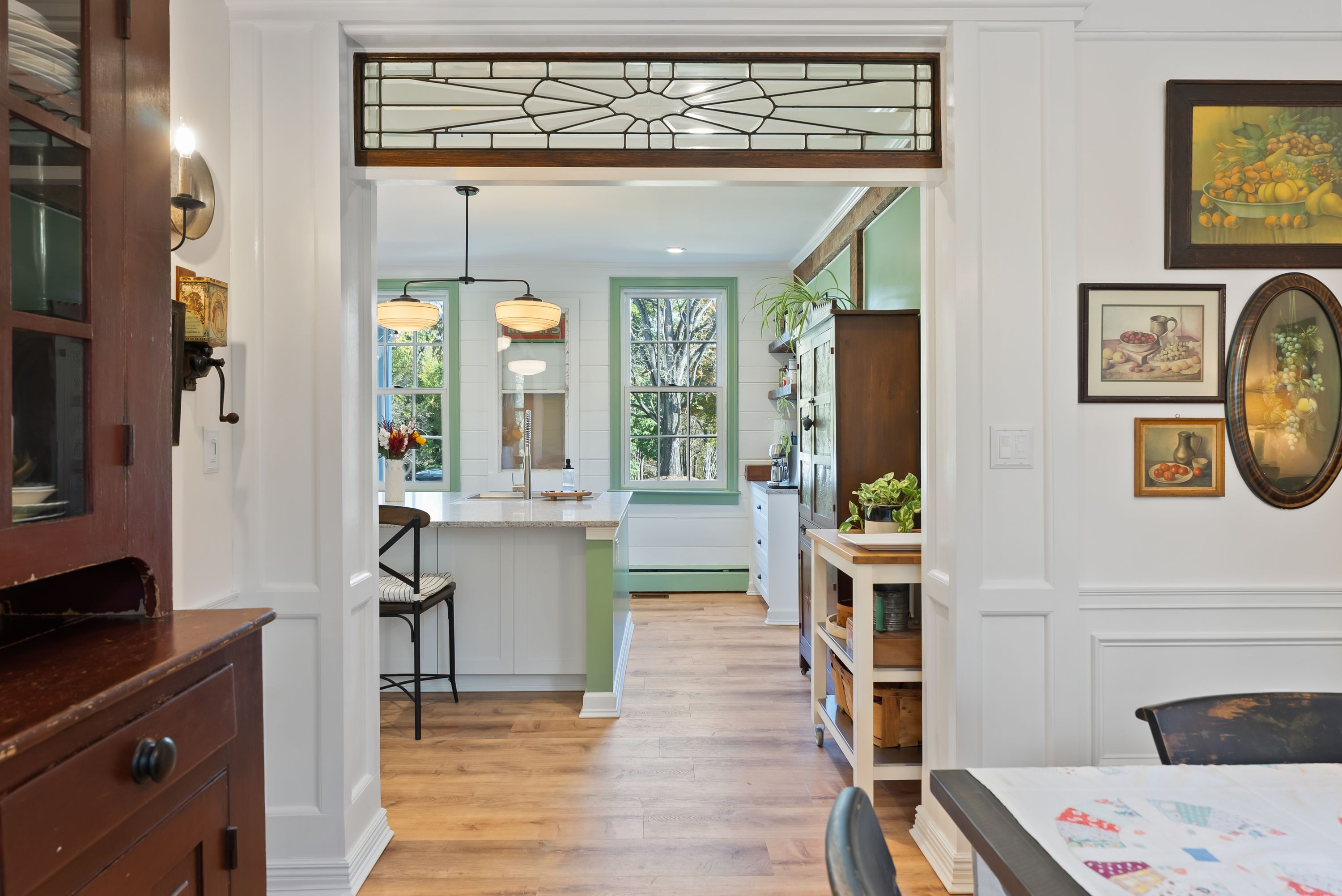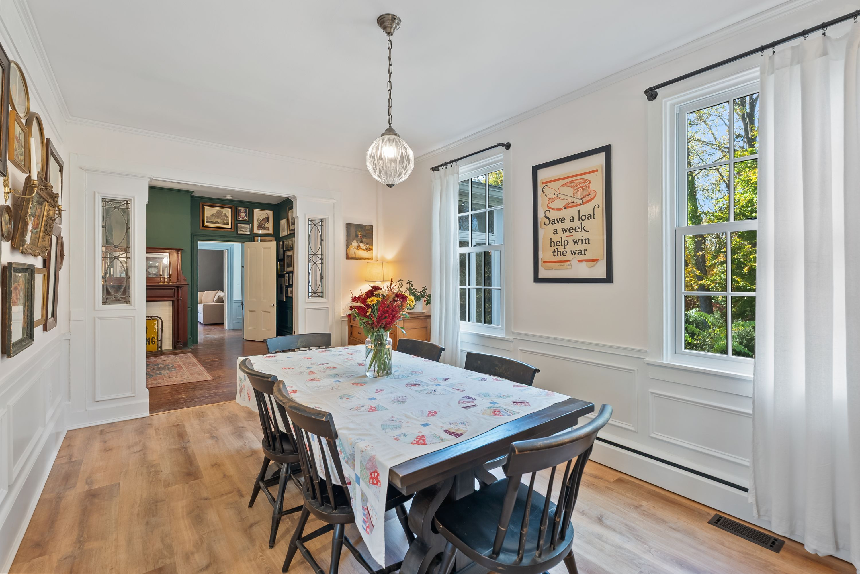 The gorgeous kitchen has been tastefully updated to meet the needs of modern living while maintaining its historic charm. Multiple fireplaces, original hardwood floors, and period details throughout preserve the soul of the home, while recent renovations ensure comfort and functionality.