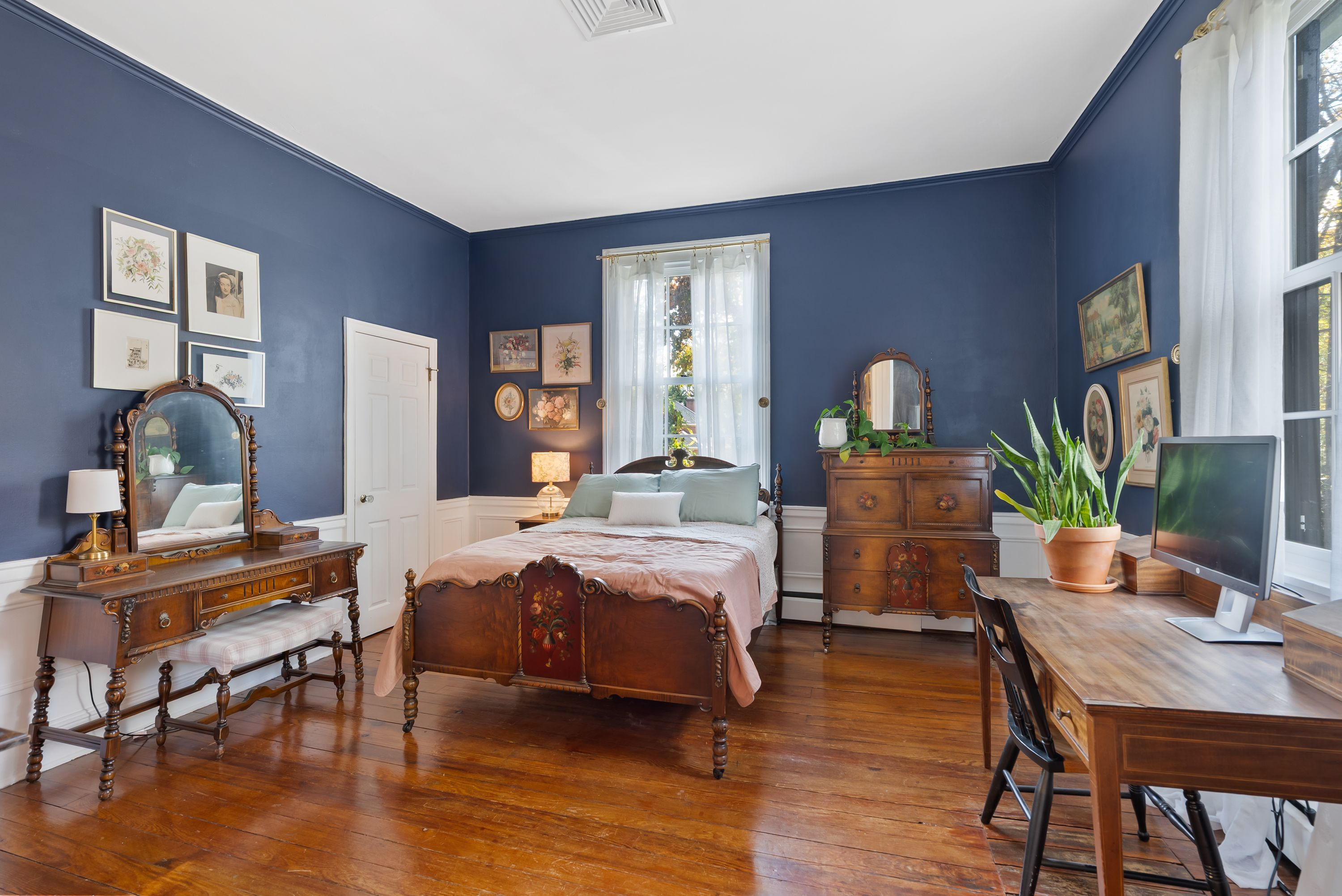 Inside, you’ll find 5 spacious bedrooms and 3 full bathrooms, including a fully equipped in-law suite—perfect for extended family or guests. The home’s grand parlor showcases soaring ceilings, rich architectural details, and abundant natural light, making it ideal for both entertaining and quiet reflection. There are several bonus rooms for media, hobbies, den or additional bedrooms.